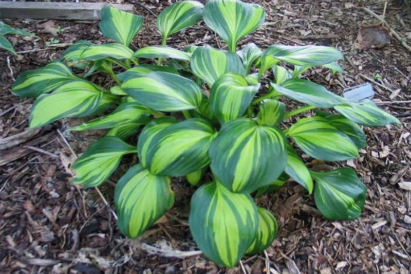 Хоста Рейнбойз Энд (Rainbows End) – это уникальное и яркое дополнение для вашего сада. Этот многолетний декоративный кустарник привлекает внимание своими необычными листьями, которые имеют насыщенный зелёный цвет с золотистыми полосами. Листья плотные, глянцевые, создают эффектный контраст и придают растению особую выразительность.